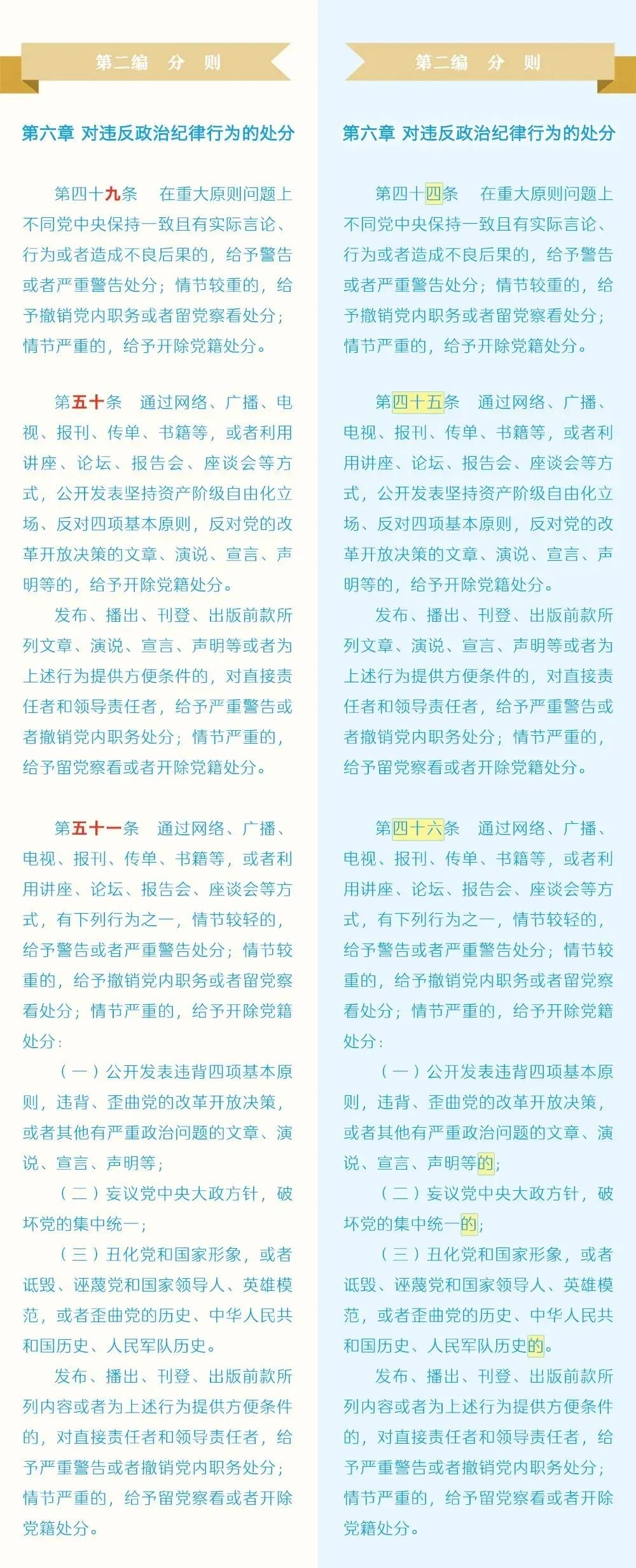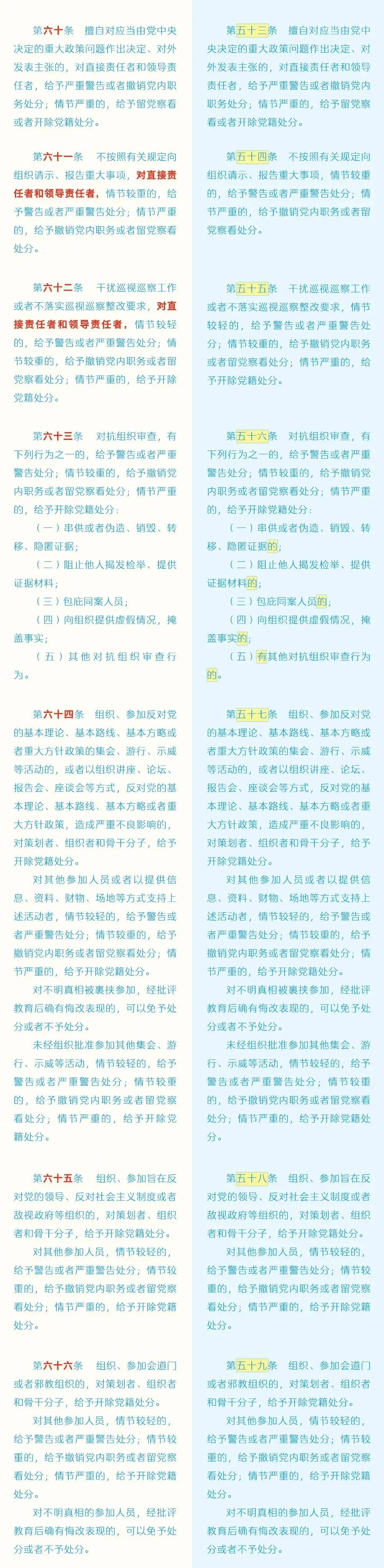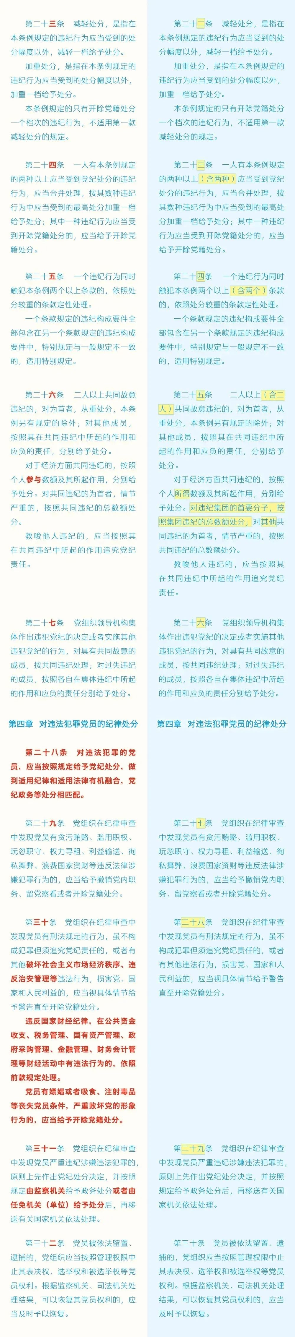 《中國共產(chǎn)黨紀律處分條例》修訂前后對照(轉載)