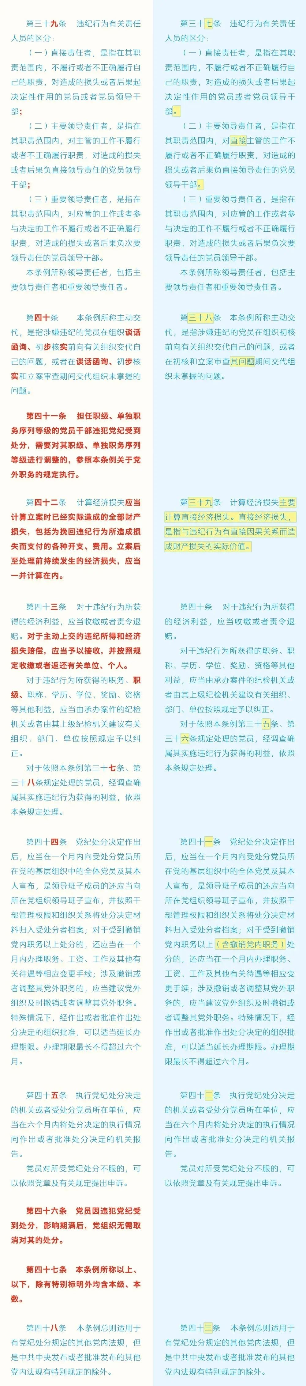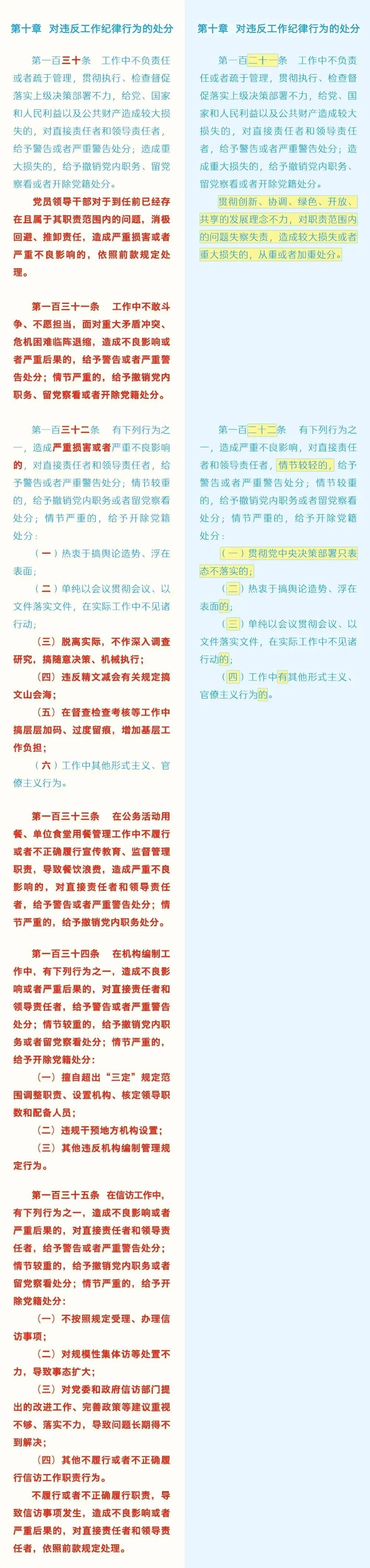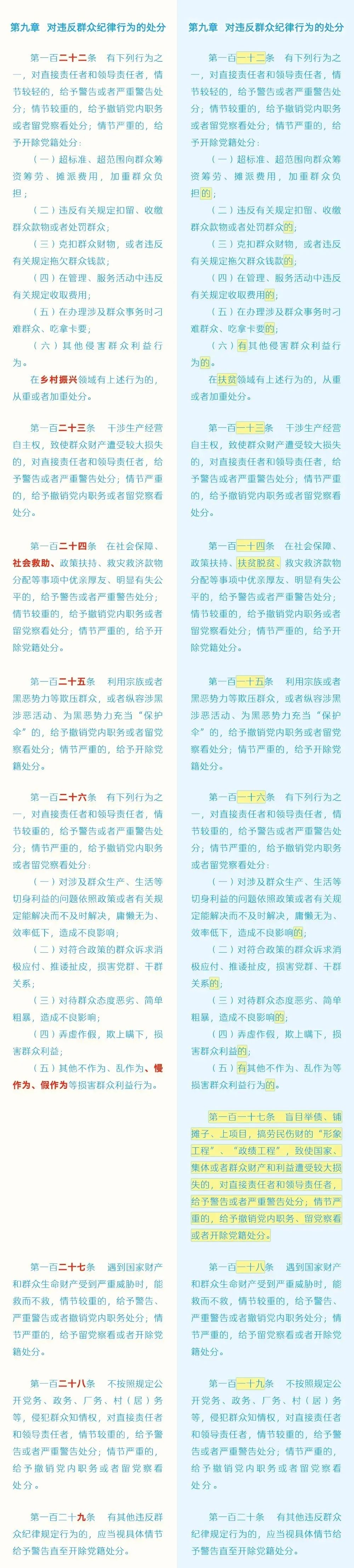 《中國共產(chǎn)黨紀律處分條例》修訂前后對照(轉載)